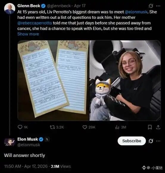 4月17日,马斯克看到相关推文后回复「稍后回答」;