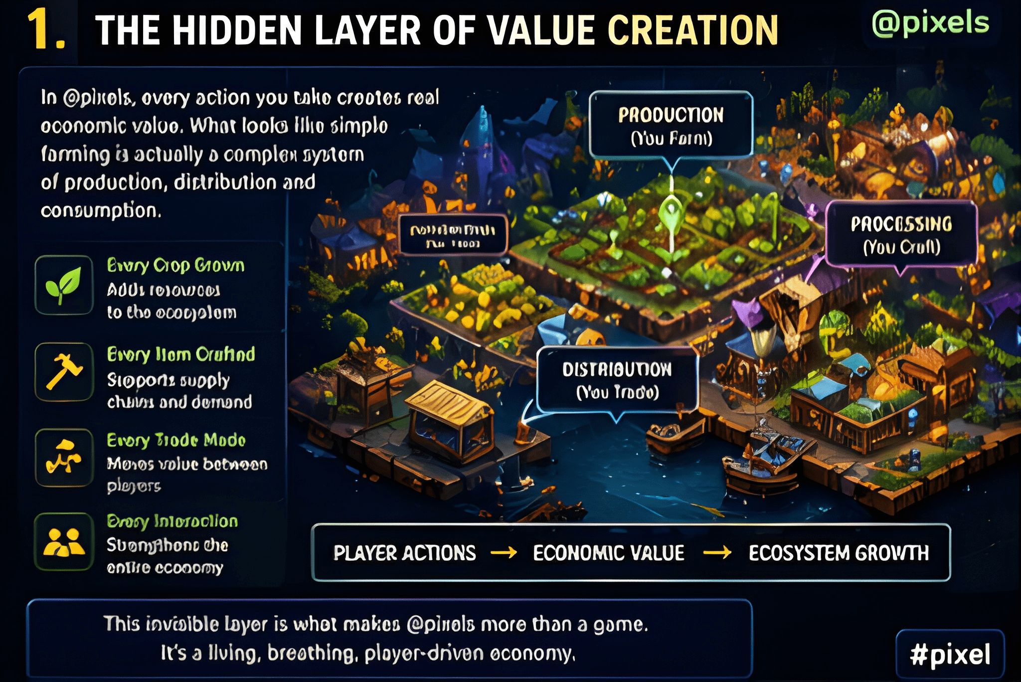 When players enter @pixels, they typically see a charming farming and exploration game. They plant crops, trade resources, and interact with other players. On the surface, it feels casual and engaging. However, beneath this simplicity lies a complex system of value creation that mirrors real-world microeconomies.