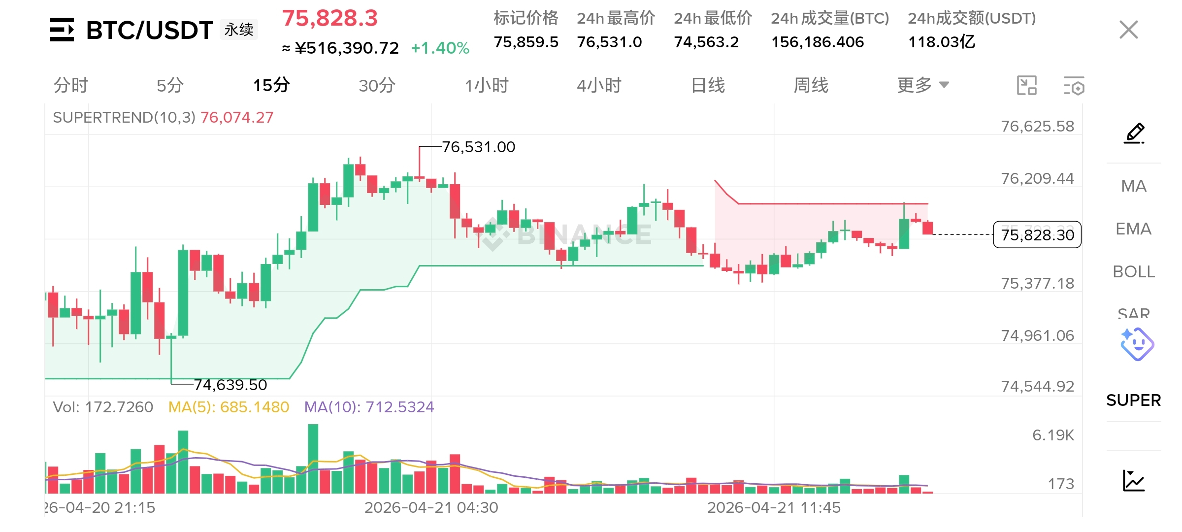 就简单说几句,美国代表团已经到达了巴基斯坦接下来就等伊朗这边了大概率这次和谈会达成停火协议(推迟14天或者一个月左右),但不会全面停战,全面停战谈判绝对是川普女婿去谈这个昨天老山分析过可以去看前文,然后看看行情大饼目前在75000上方徘徊以太在2280到2349左右徘徊接下来就坐等谈判结果出来会拉一下上去爆一下空单,情绪化主导市场没必要一直做可以休息休息,等回调下去进个小多吃一下谈判过后的福利。