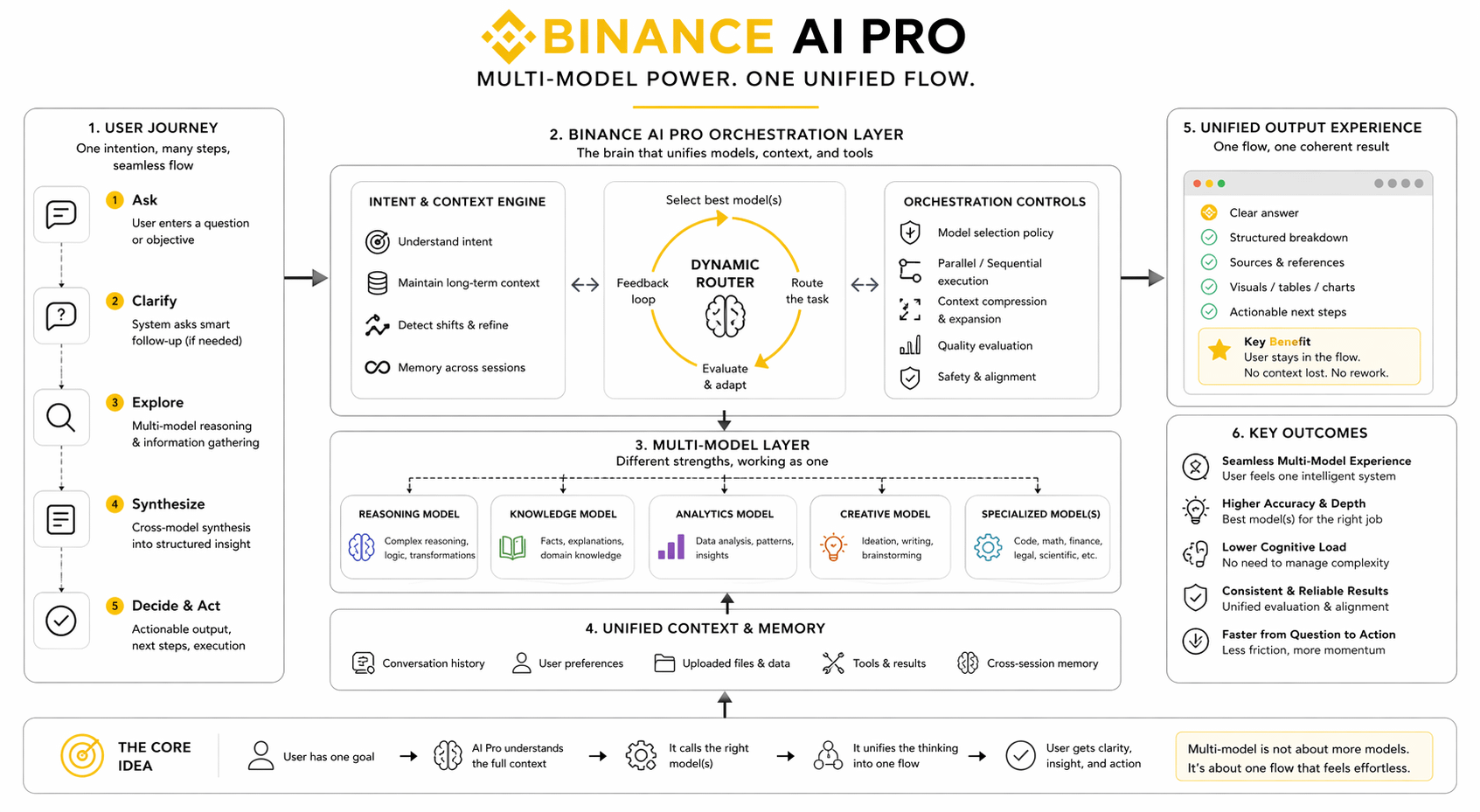 The second point lies in role separation without showing off the roles. Many products love making users see which layer is being called, which reasoning mode is being switched, which answer style is being changed. Honestly, that is a technically flashy habit that drains the user. A mature usage flow should know how to hide the shift changes backstage. Binance AI Pro stands out to me because what I feel is continuity, not the feeling of being pushed across multiple processing counters. Ironically, the more a product makes the user see the machinery changing gears, the less intelligent it feels in the actual experience.