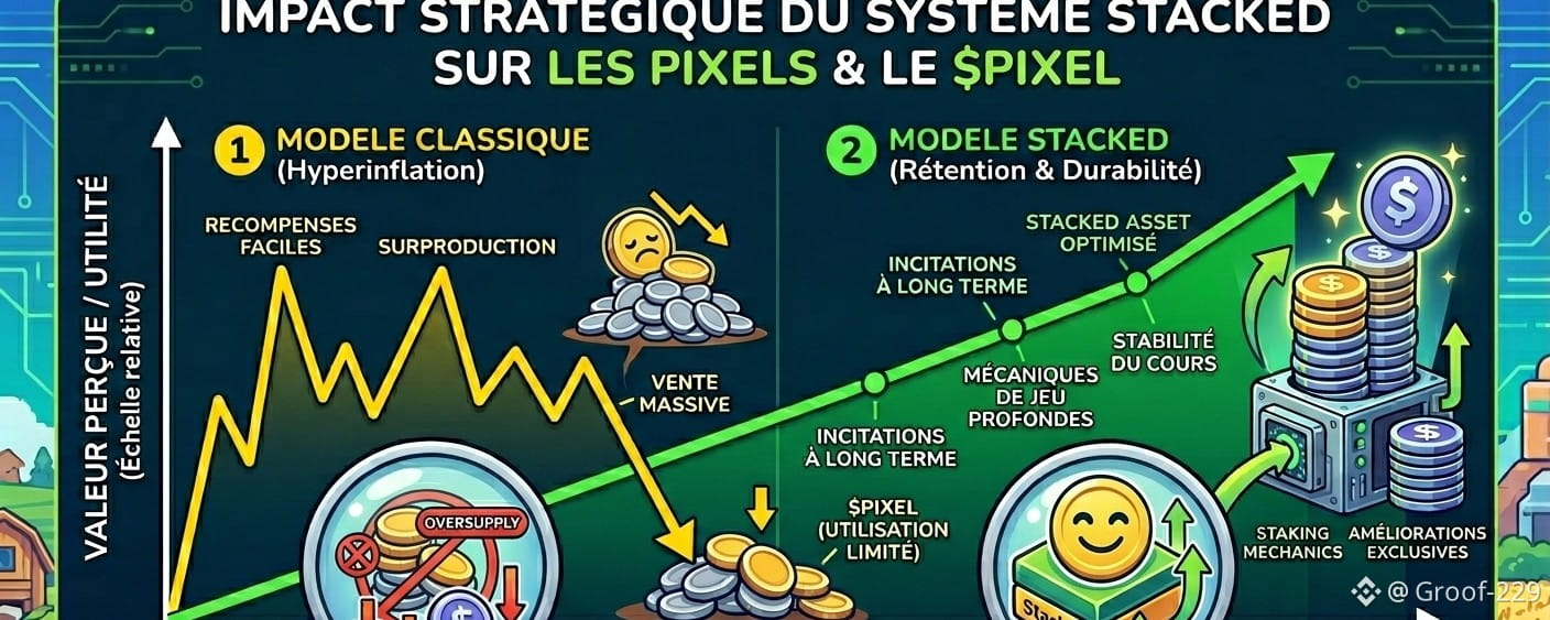 Le défi historique de la GameFi a toujours été l'hyperinflation des ressources. @Pixels s'attaque de front à ce problème en remplaçant les mécaniques de "farm and dump" par une structure Stacked beaucoup plus sophistiquée. Dans ce nouvel environnement, posséder des actifs ne suffit plus ; c'est la manière dont ils sont intégrés et "empilés" stratégiquement qui crée de la valeur. Cette approche favorise la rétention des joueurs passionnés plutôt que les spéculateurs à court terme.