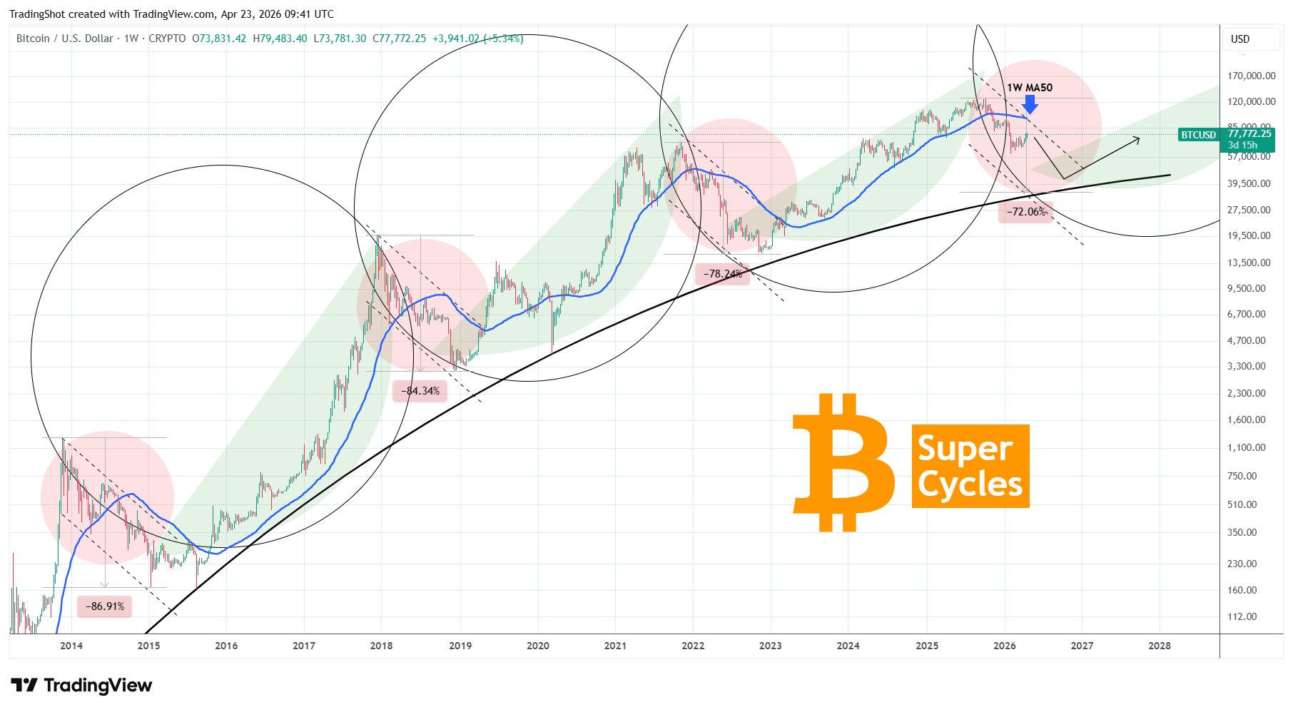 Bitcoin (BTCUSD) is quite possibly having the last rally before it starts the 2nd and final Phase of the Bear Cycle. Technically this Super Cycles chart shows that once the price breaks below the 1W MA50 (blue trend-line), the Bear Cycle remains valid until it recovers it.