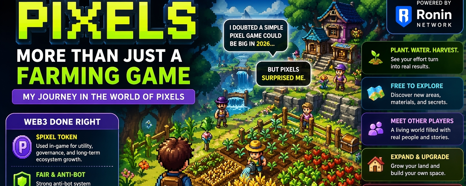 At first, I really didn’t get the hype around Pixels. The pixel-style graphics felt way too basic, almost like something from years ago. In a time where games are becoming more realistic and visually intense, I honestly doubted a simple-looking game like this could stay relevant in 2026. It just didn’t seem like something that could hold attention for long.