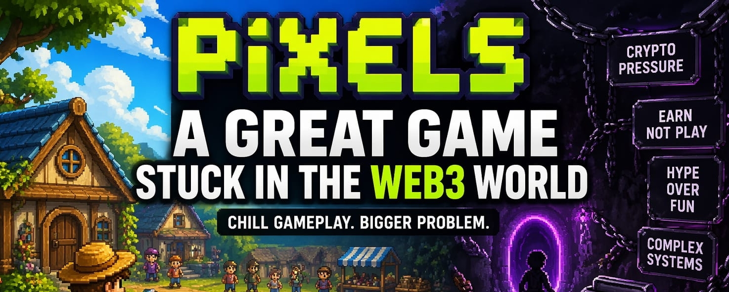 They come in loud. Talking about ownership, economy, scarcity, all that stuff… before they even prove the game is worth touching. Pixels doesn’t completely avoid that, but it pushes it to the side just enough for the actual game to breathe.