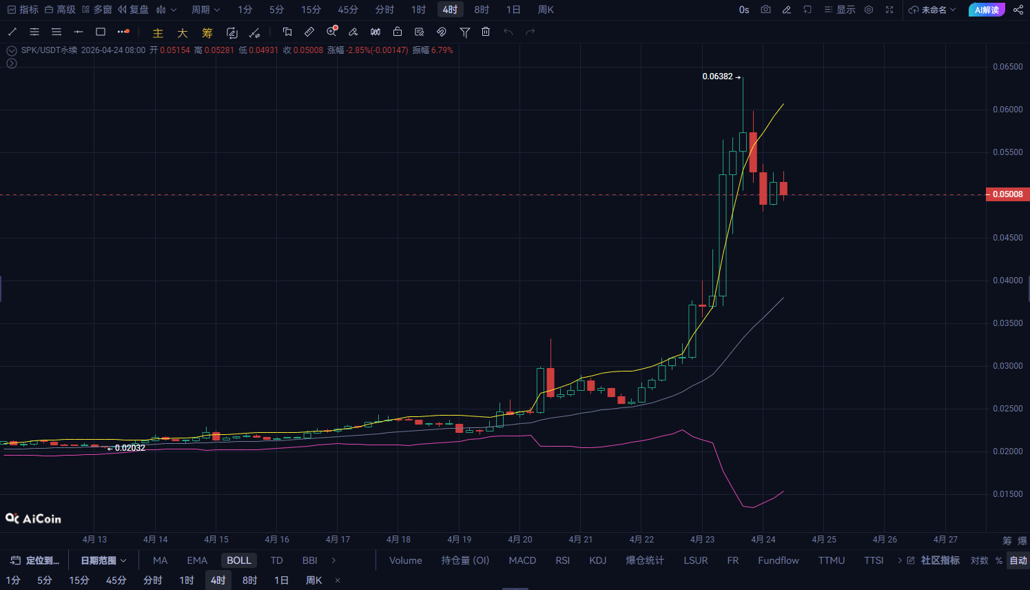 直接讲结论:SPK当前结构偏空,属于弱反弹后的延续下行节奏,日内更大概率走震荡下跌,而不是反转上涨。