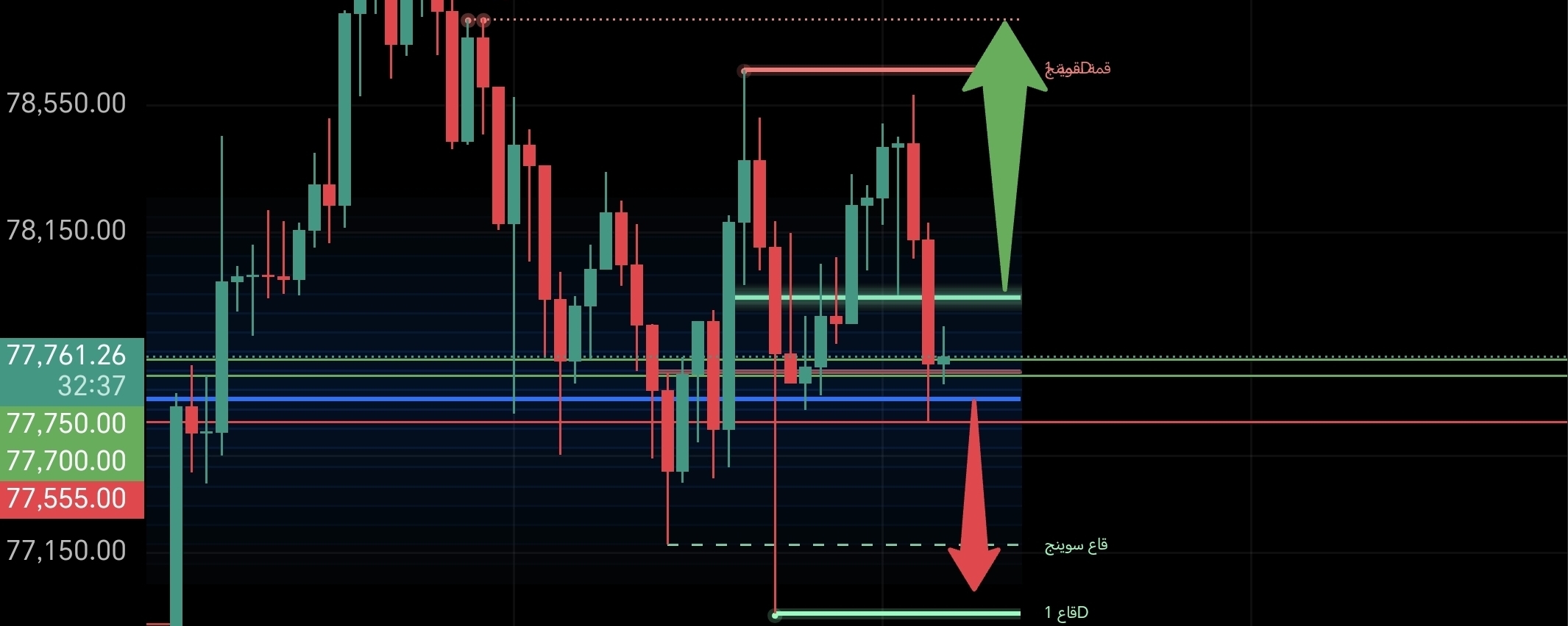 - ✅ رد فعل من 77,700 → تفعيل السيناريو الصاعد