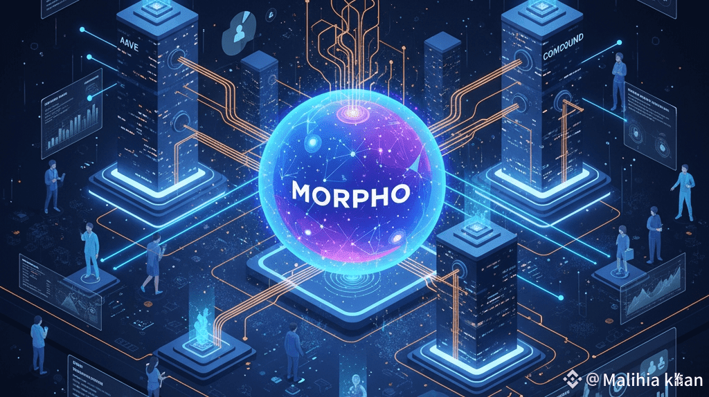 Morpho doesn’t replace Aave or Compound it sits on top of them and makes them better.