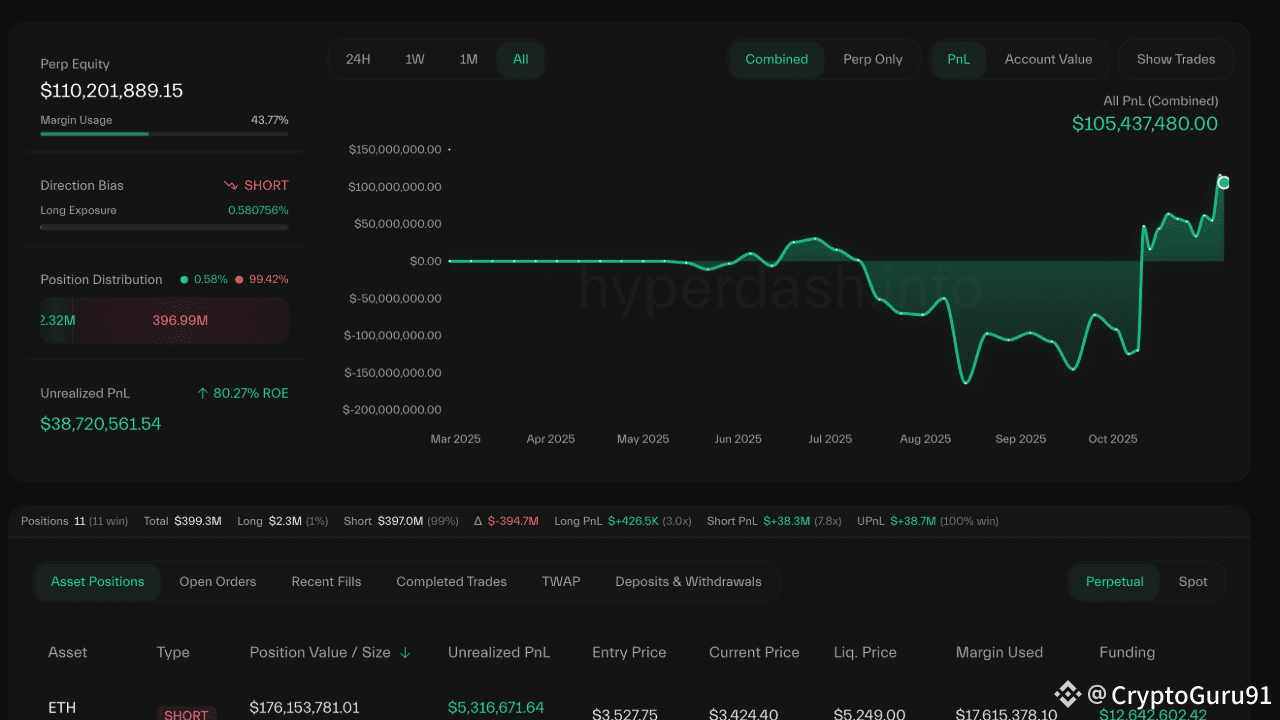 In a time when most traders struggle to stay profitable, one anonymous trader has just posted a jaw-dropping $105,437,480 total PnL — and the crypto world can’t stop talking about it.