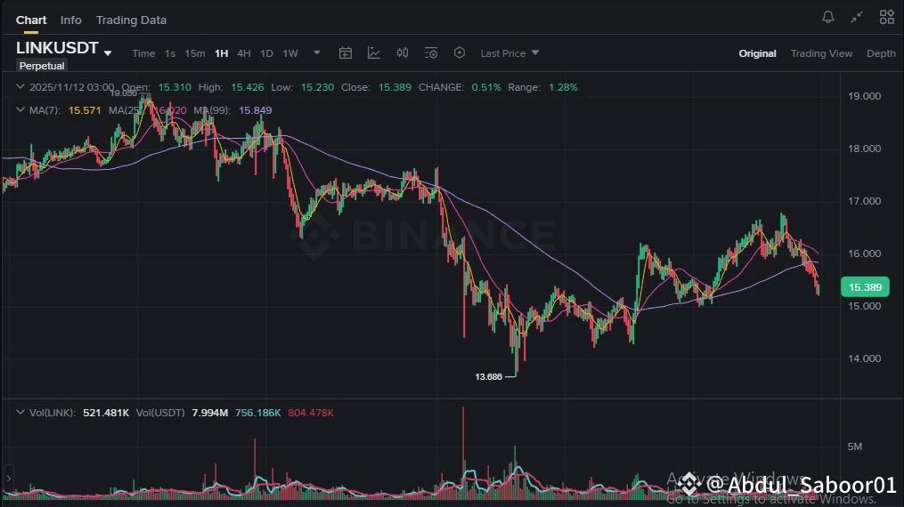 Lower highs near $15.40 → $15.20 → $15.00 = short-term profit-taking.