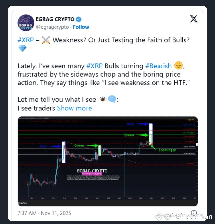 Egrag Crypto acknowledged that the market’s current stagnation has led many bullish traders to question their positions. He criticized what he described as premature pessimism from participants frustrated with XRP’s pace of movement.