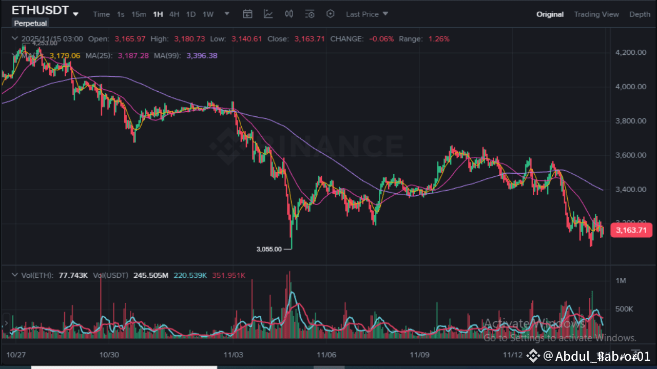 When ETH touches 3160, the bounce shows small candles → meaning: