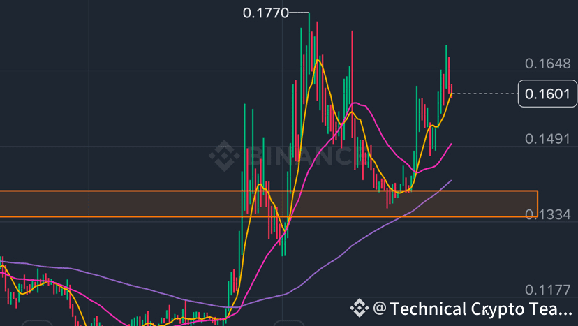 WCT is currently maintaining a bullish market structure, supported by strong MA alignment and a series of higher lows, indicating healthy trend continuation. Price is consistently holding above key moving averages, which signals sustained buyer control. The zone between 0.1334–0.1490 continues to act as a strong support-resistance flip area, and the recent volume increase confirms renewed interest from traders.