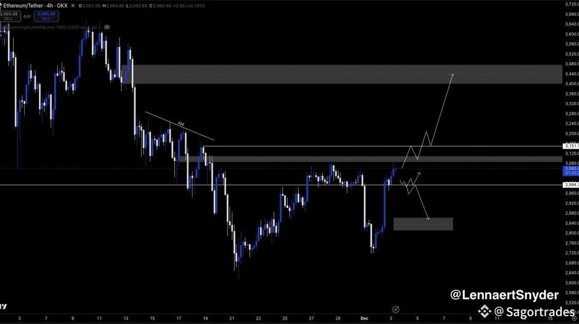 $ETH is trading against key ~$3,100 resistance again. Just like Bitcoin, reclaiming $3,100 resistan
