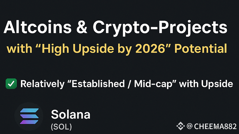 Solana is a highly scalable, ultra-fast blockchain known for cheap fees and massive developer activity. SOL leads in real transactions, on-chain activity, and new app launches. Many analysts expect it to remain one of the top-performing altcoins until 2026
