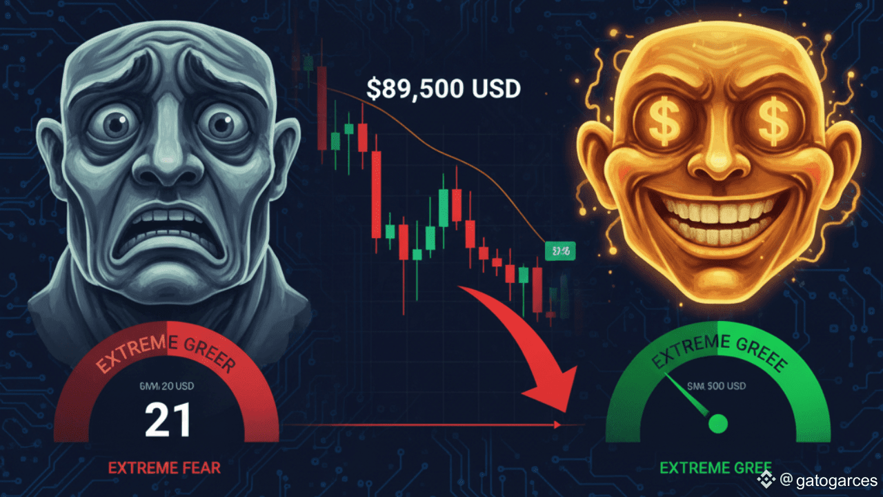Este sentimiento de miedo extremo no es casual; es una reacción directa a la corrección que llevó a $BTC por debajo de los $90,000.