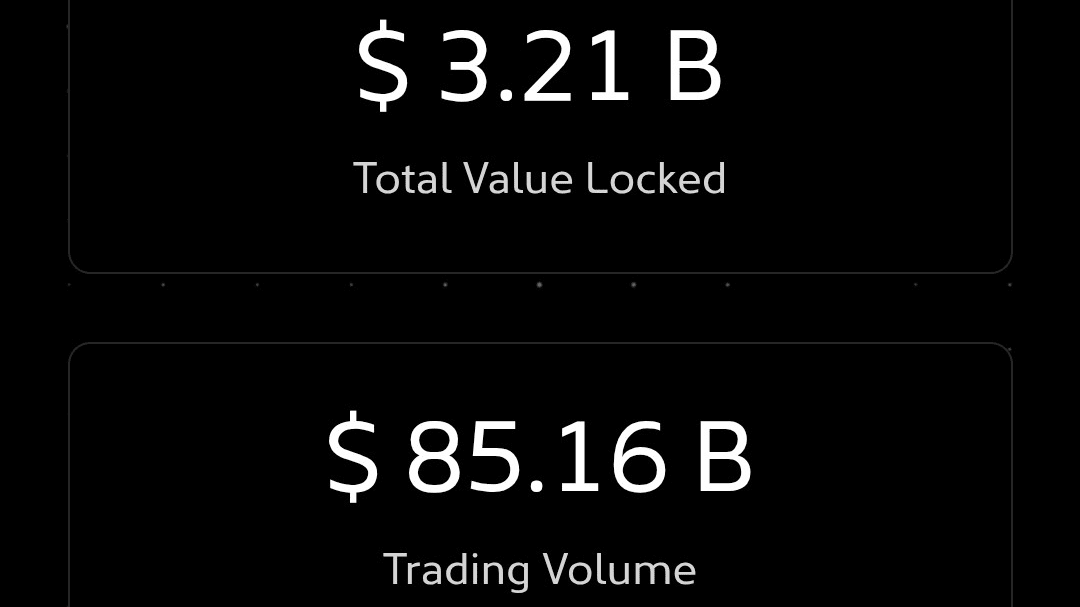 1. Chiffres solides : La plateforme affiche un Volume Total Verrouillé (TVL) de $3.21 Milliards et un volume de trading impressionnant de $85.16 Milliards.