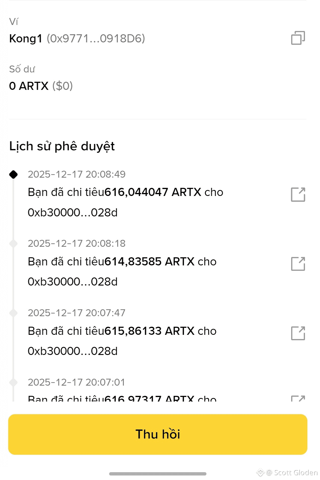 ✔ Smart contract đã tự động trừ ARTX nhiều lần