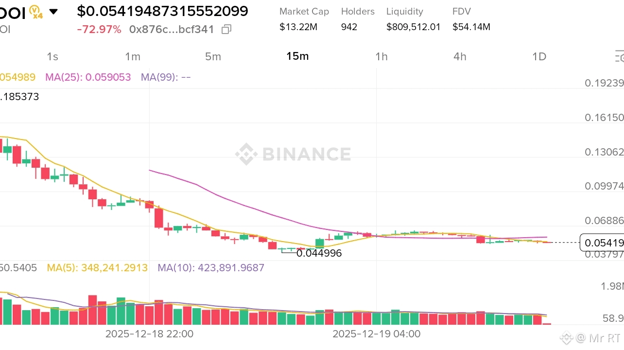 $VOOI is a cross-chain Perp DEX aggregator. The current price action is typical of a newly listed token (listed on major exchanges like Gate.io and Binance Alpha yesterday, Dec 18). The "72.97% drop" shown in your screenshot is the standard "price discovery" phase where the initial listing pump meets heavy selling pressure from airdrop claimants and early seed investors.