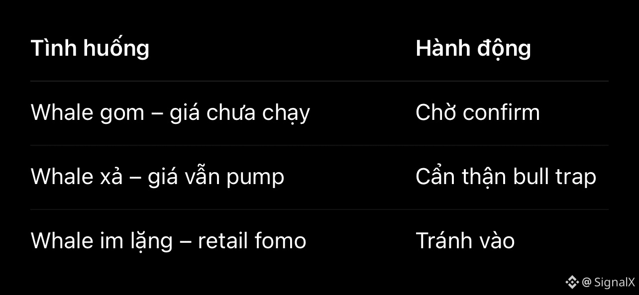 ❌ Sai lầm phổ biến: Thấy whale là FOMO theo ngay.