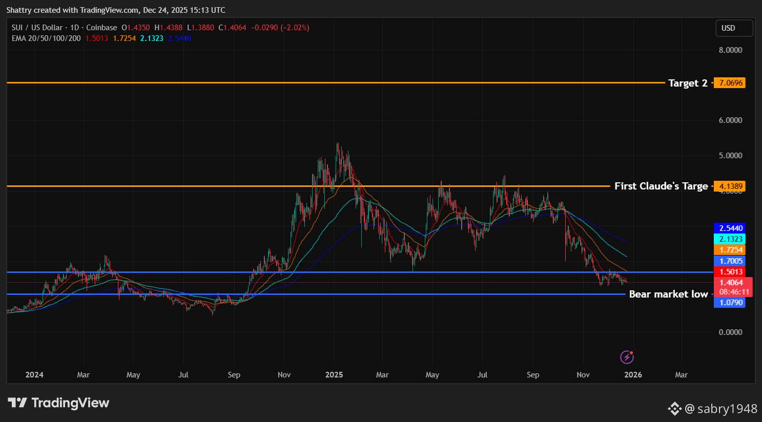 على الرغم من مؤشرات النظام البيئي القوية، يعكس ضعف السعر حذر المستثمرين. يضع سيناريو كلود الهابط سوي في نطاق توطيد بين 1.10 و1.70 دولار إذا تدهورت الظروف الاقتصادية الكلية بعد عام 2025.