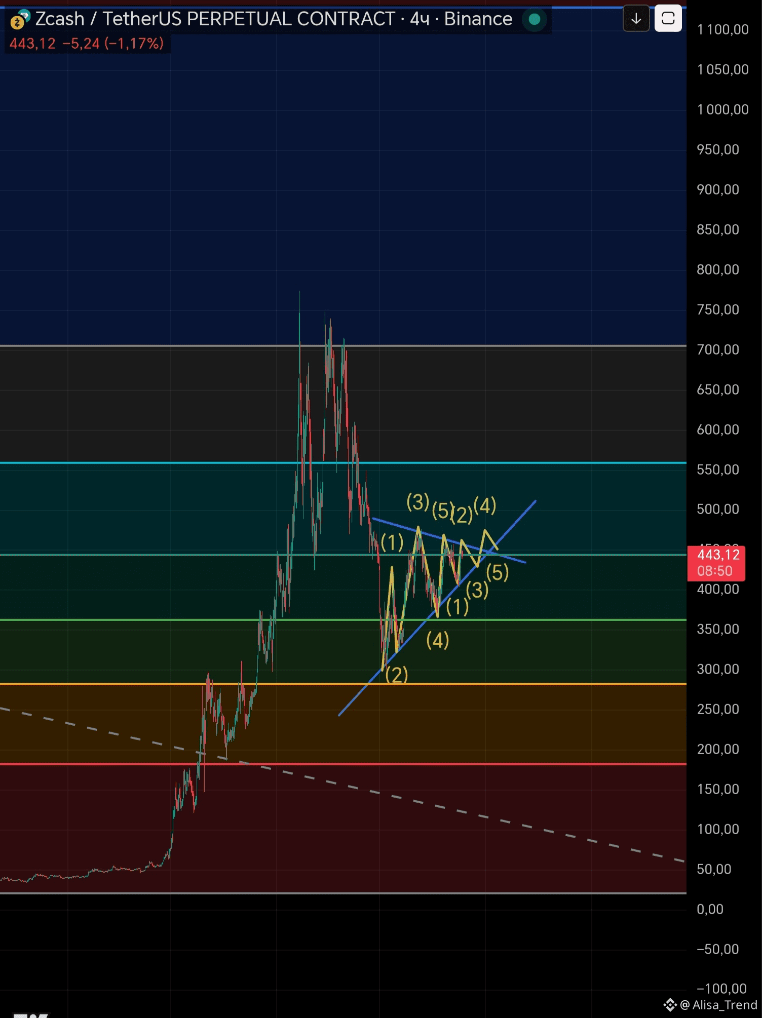Текущая цена — $443.12: Мы находимся в критической точке. Прямо сейчас решается судьба монеты на ближайшие недели.