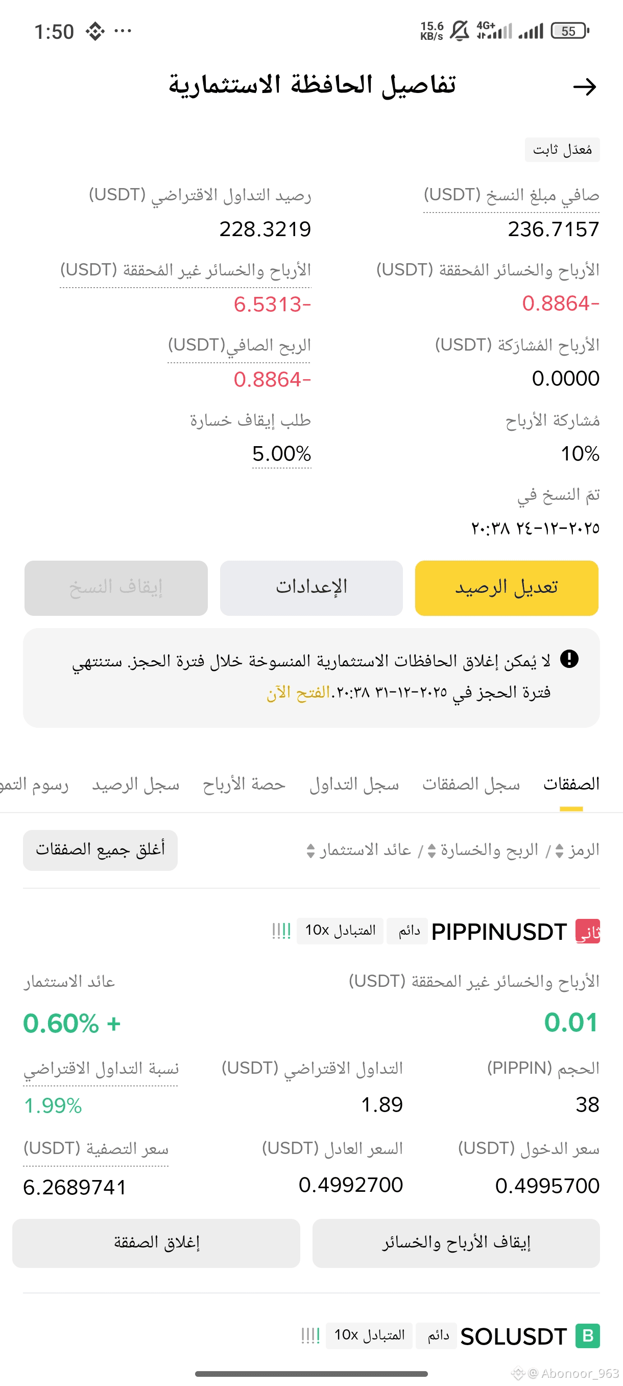 المراقبة: يمكنك متابعة أداء المحفظة، وإيقاف النسخ، أو تعديل الإعدادات في أي وقت.