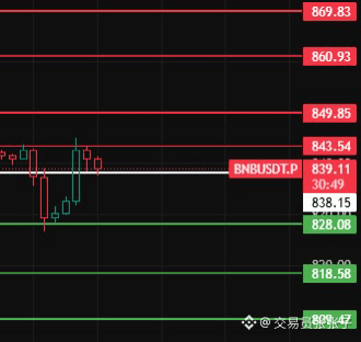 今天1小时级别收线跌破838那这波1小时级别反弹失败,往下下方支撑位留意828-818-801这几个位置附近!#BNB走势