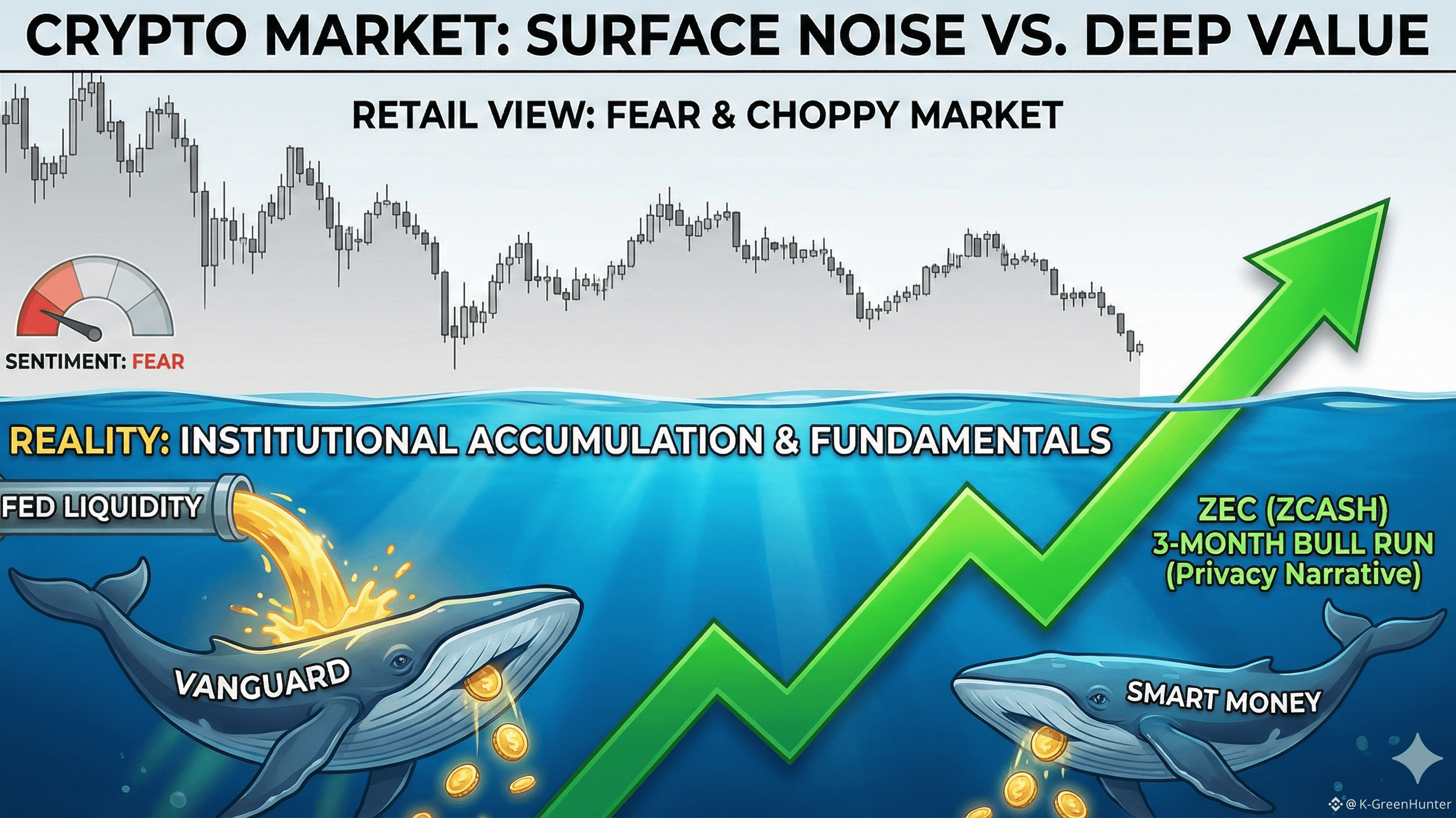 Pasar saat ini sedang "bermain catur" antara ketakutan ritel dan keserakahan institusi. ZEC adalah salah satu aset "kuda hitam" yang diuntungkan oleh narasi privasi yang kembali mencuat.