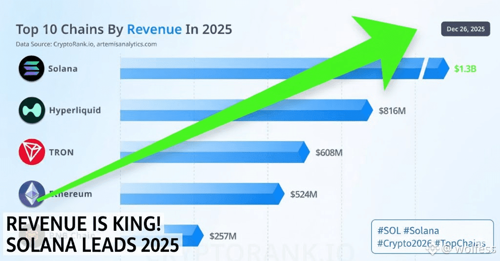 Solana dominates with $1.3B in revenue, while Hyperliquid follows at $816M. This proves the game is shifting toward chains that generate consistent fees from real trading activity, rather than just relying on TVL or hype. 🚀