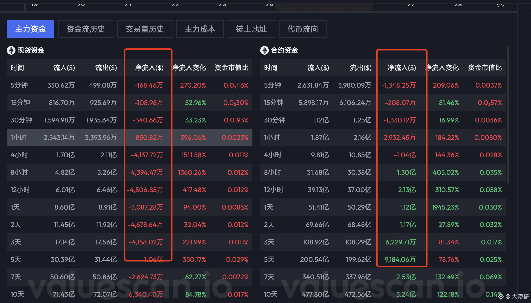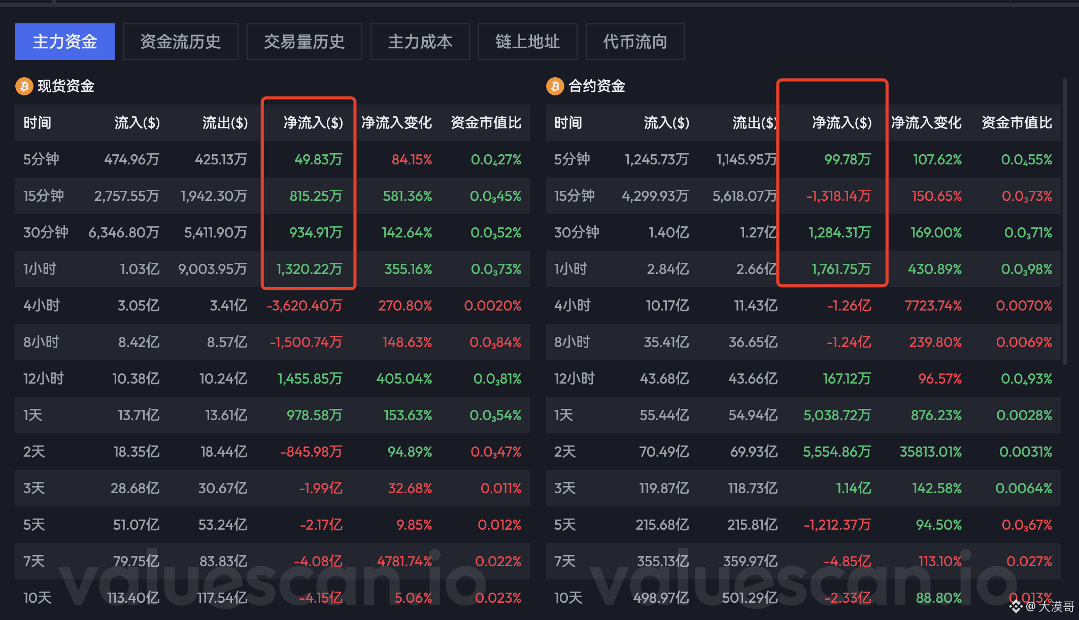 咱们再看下数据,我一般喜欢通过技术面加数据面一起来看。大饼现货与合约的资金积累还行,目前来看都有不同程度的资金流入,后边要持续观察。