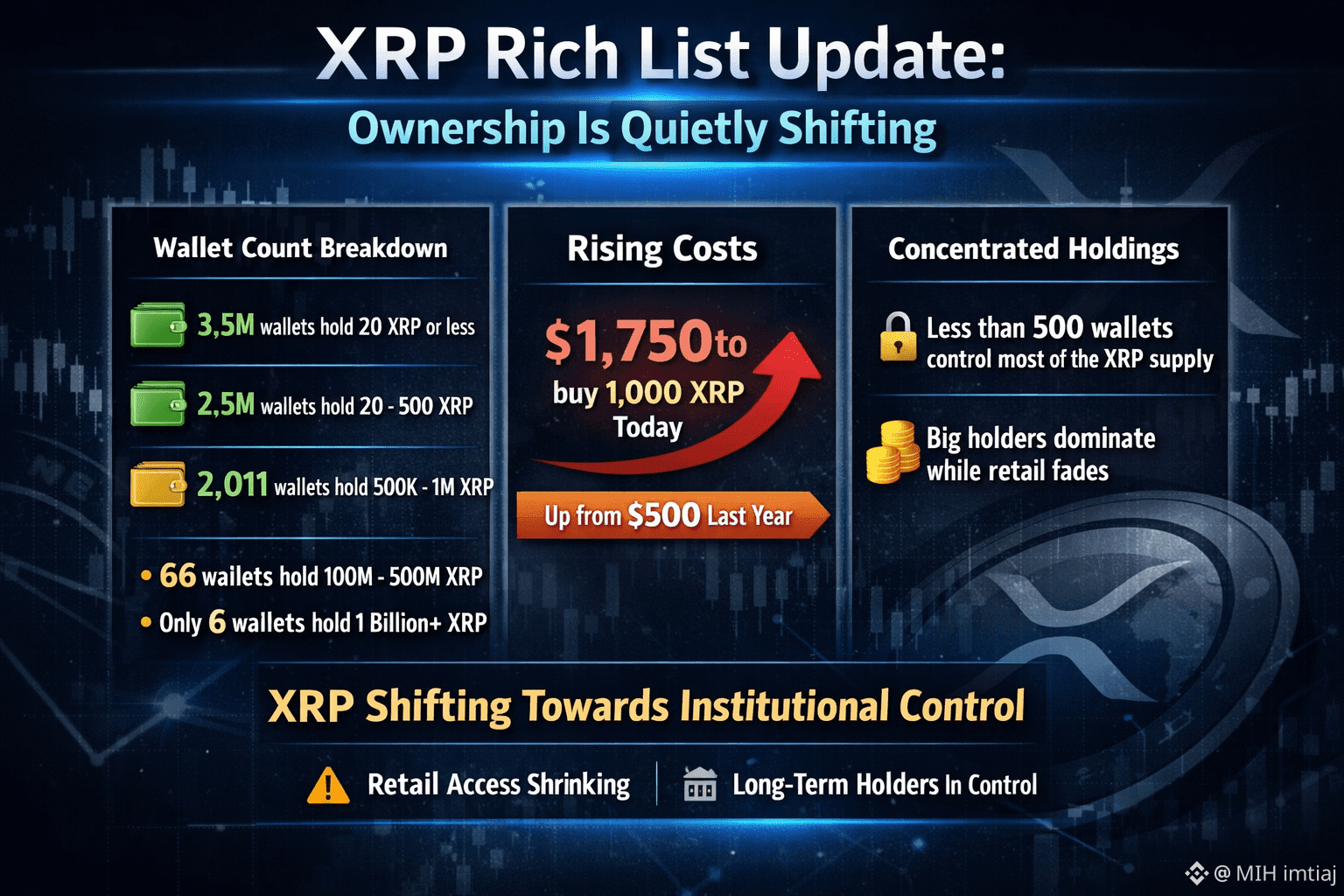 $XRP — Recent data from the XRP Rich List is painting a clear picture of how ownership dynamics are changing, and retail investors are feeling the pressure.
