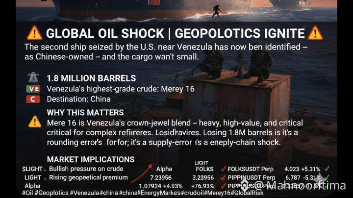 Merey 16 is Venezuela’s crown-jewel heavy blend, essential for complex refineries. Removing 1.8 million barrels from the global flow is not a minor adjustment—it is a tangible supply-chain shock. By targeting this specific cargo, the U.S. is signaling a transition from "paper sanctions" to active interdiction, demonstrating a zero-tolerance policy for sanctioned energy flows.