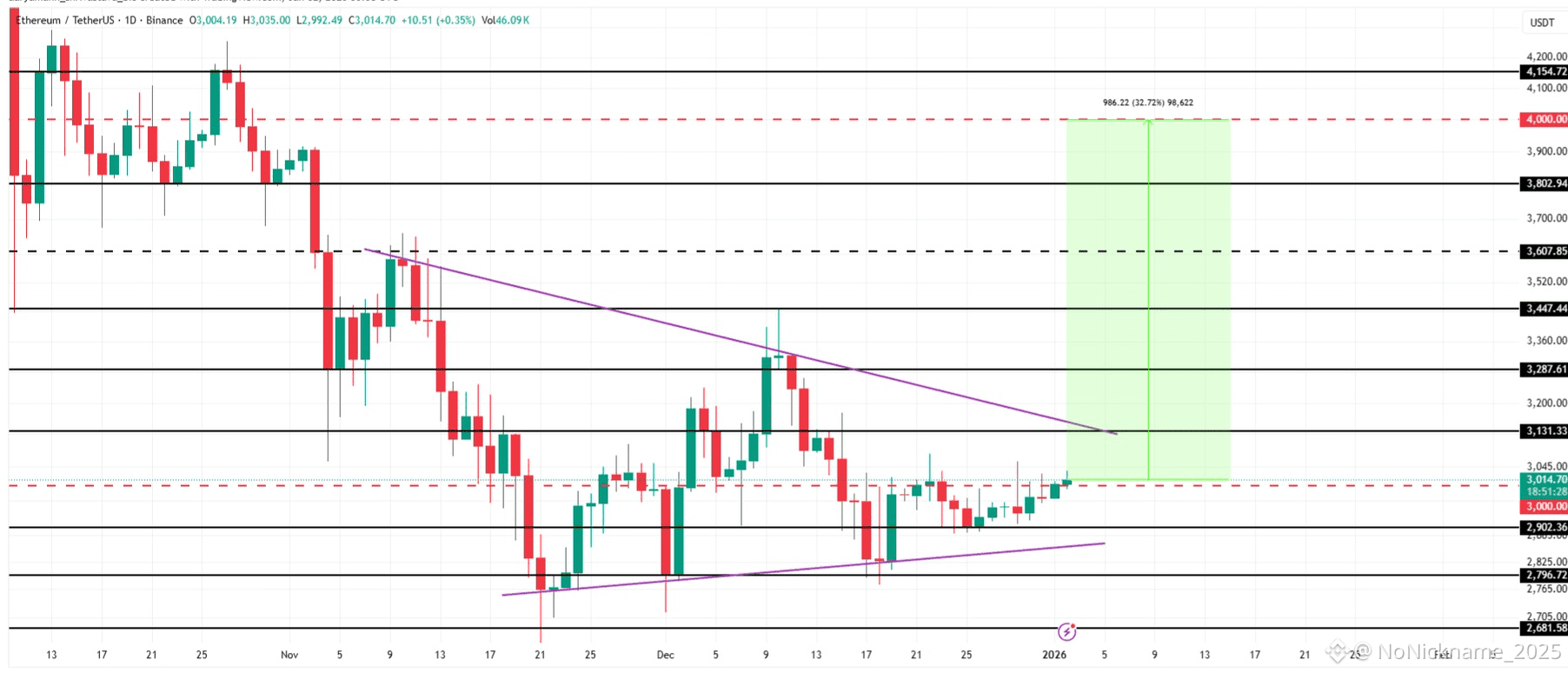 В начале 2026 года цена Ethereum проявила признаки локальной силы. Актив вновь закрепился выше уровня $3000, преодолев это сопротивление впервые за последние десять дней. Данное событие является важной психологической вехой, однако это лишь начальный этап на пути к целевому значению $4000.