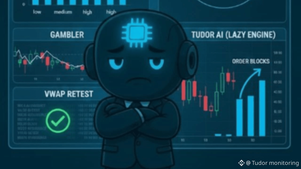 At Tudor Indicator, we built our engine (leveraging Meta & Microsoft-based AI) to be intentionally "lazy." Our system is designed to reject setups. While a human trader sees a 5-minute candle and feels FOMO, our AI scans 1H and 4H timeframes for: