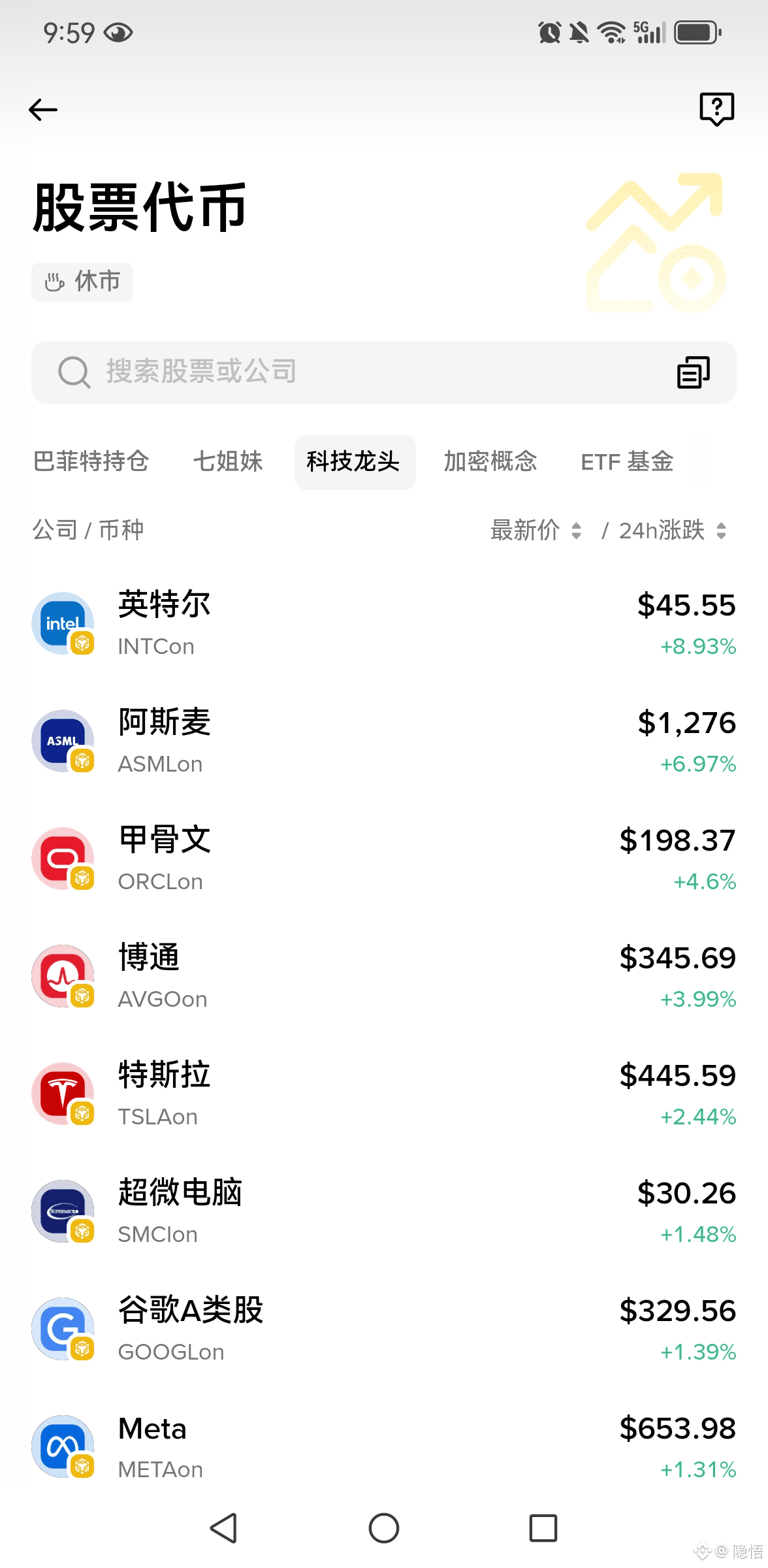 晚上在币安钱包找中文MeMe,手指突然停住了。列表里混进了英特尔、特斯拉、英伟达。