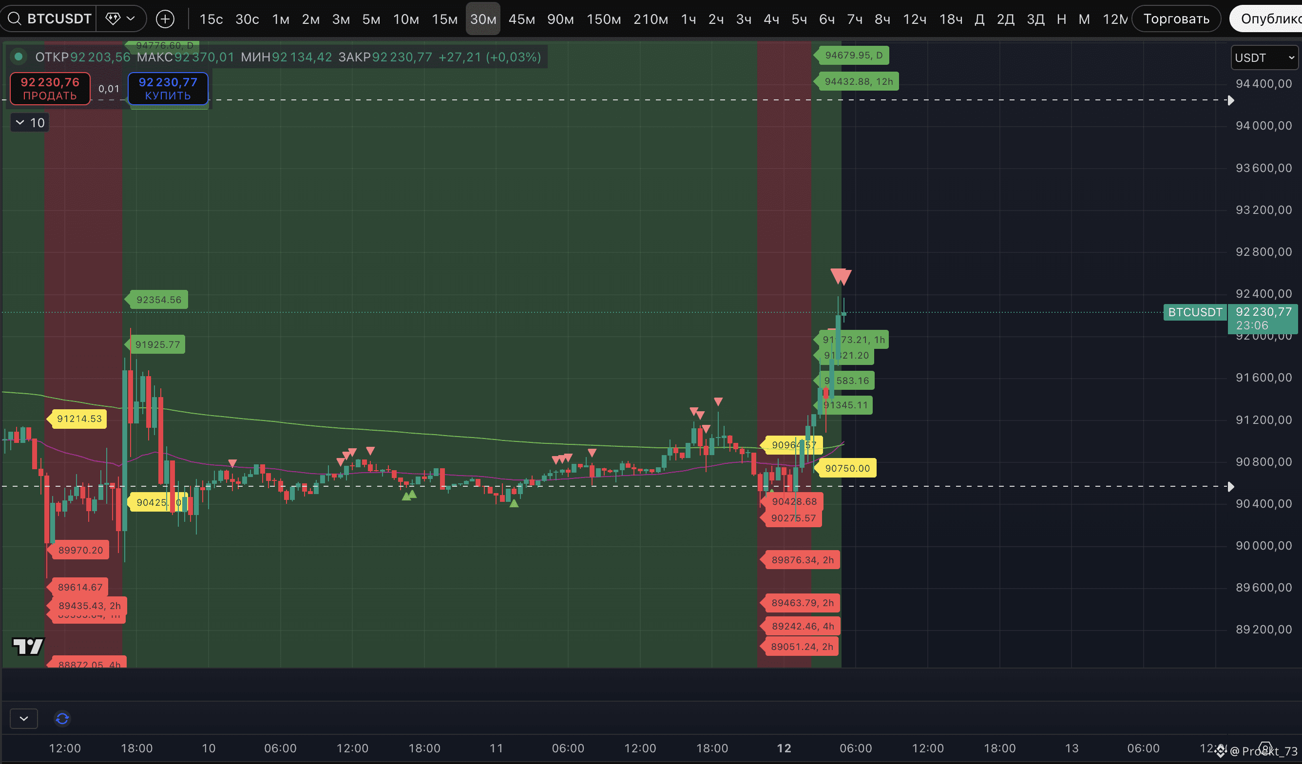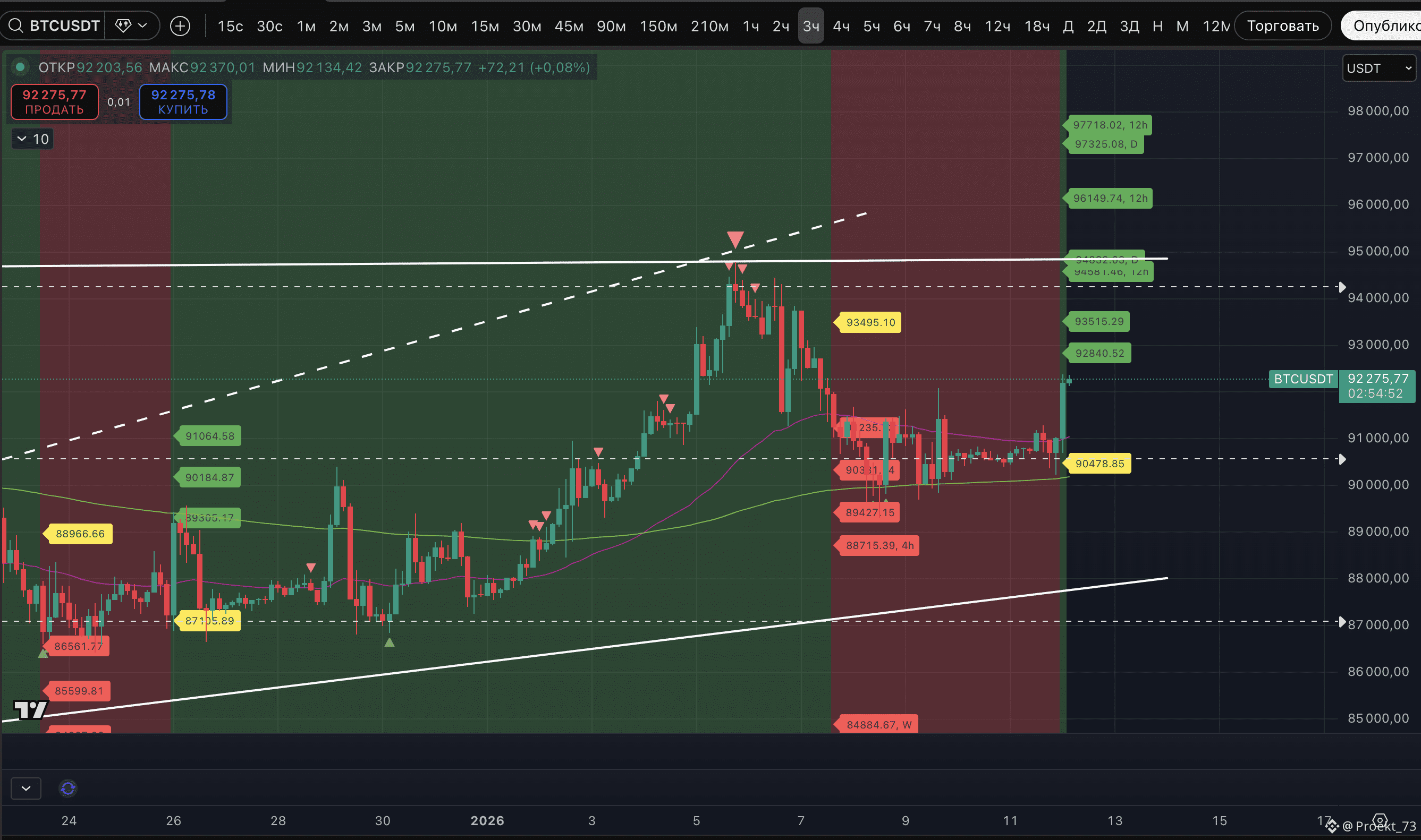 - По #BTC базовые цели: 92 840$ и 93 515$. Уровень потенциального слома: 90 478$.