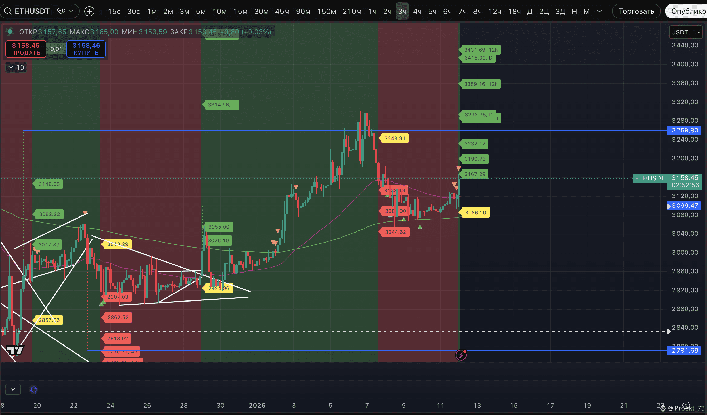 - По #ETH базовые цели: 3 167$, 3 199$, 3 232$. Уровеь потенциального слома: 3 086$.