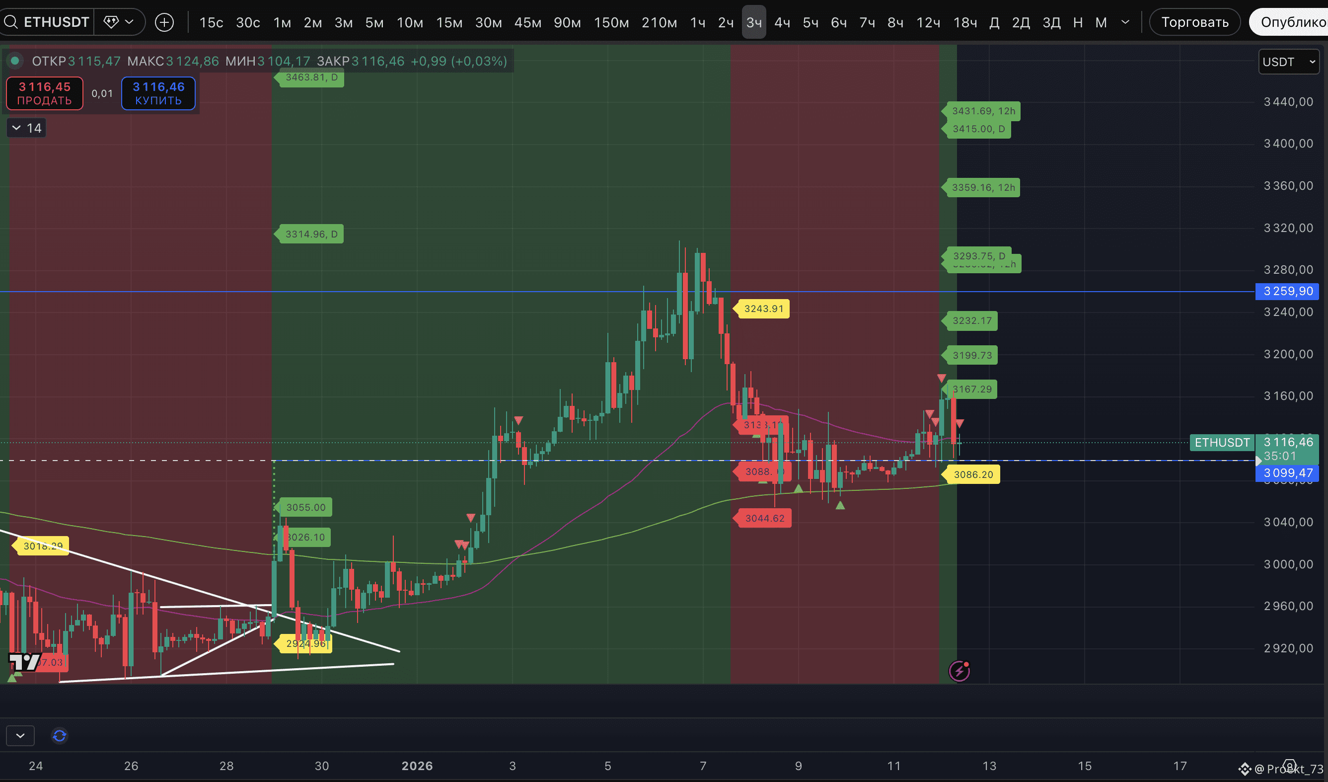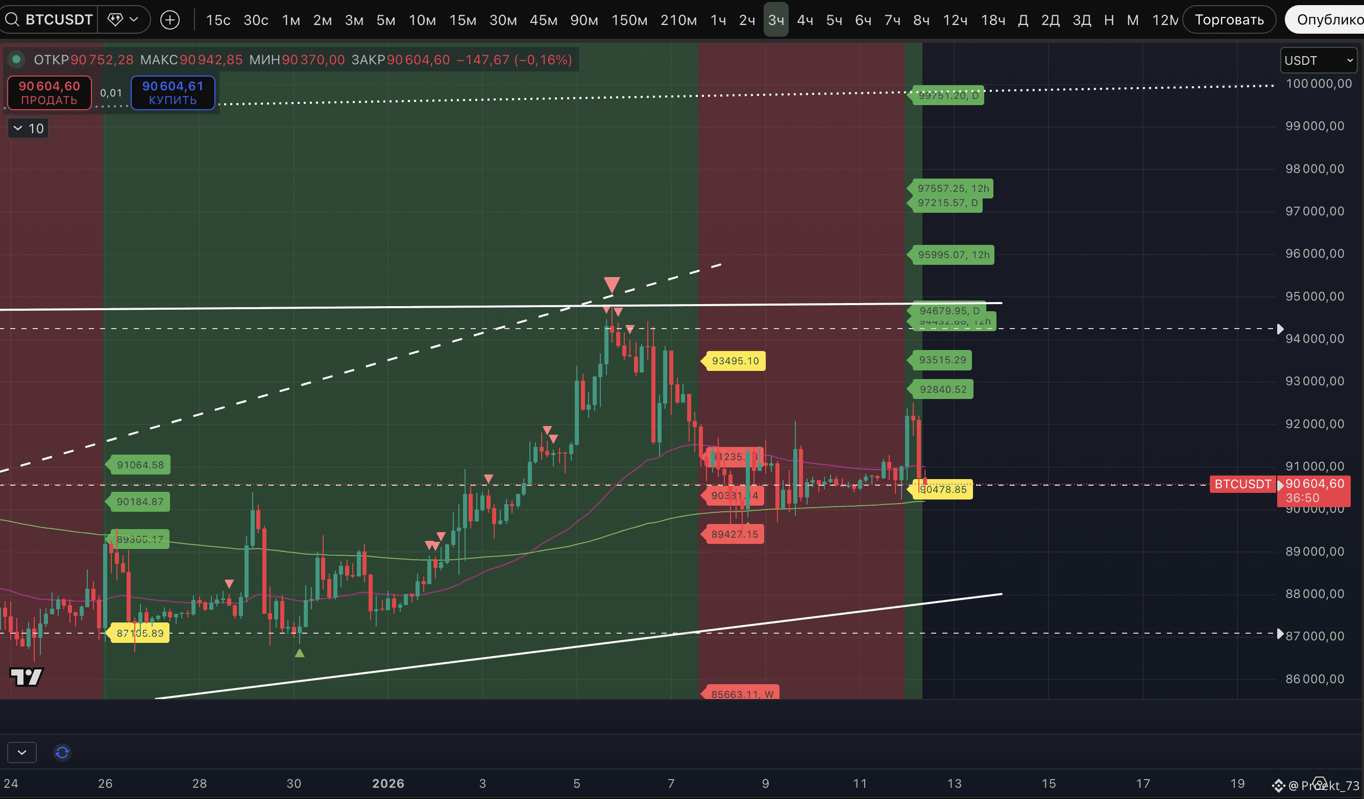 - Писали, что уровень потенциального слома аптренда по #BTC - 90 478$, а по #ETH - 3 086$. Когда смена тренда переходит на резком движении - откат к уровню потенциального слома - очень вероятен. В итоге BTC на коррекции опускался к 90 370$ (но телом свечи ниже 90 478$ пока не закрывался), а ETH - к 3 101$. То есть эфириум уровень потенциального слома пока даже не тестировал, снова в моменте смотритмся получше биткоина.