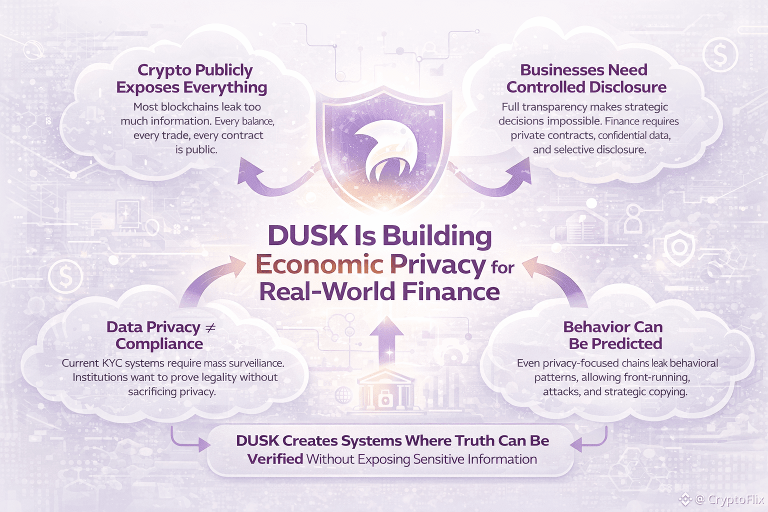 Most people describe DUSK as a privacy blockchain, but that label barely scratches the surface. Privacy here is not about hiding things for the sake of hiding. It is about enabling real economic activity to exist on-chain without breaking how the real world actually works. Businesses, institutions, and even individuals do not operate in full public view. They operate with boundaries, selective disclosure, and controlled access to information.