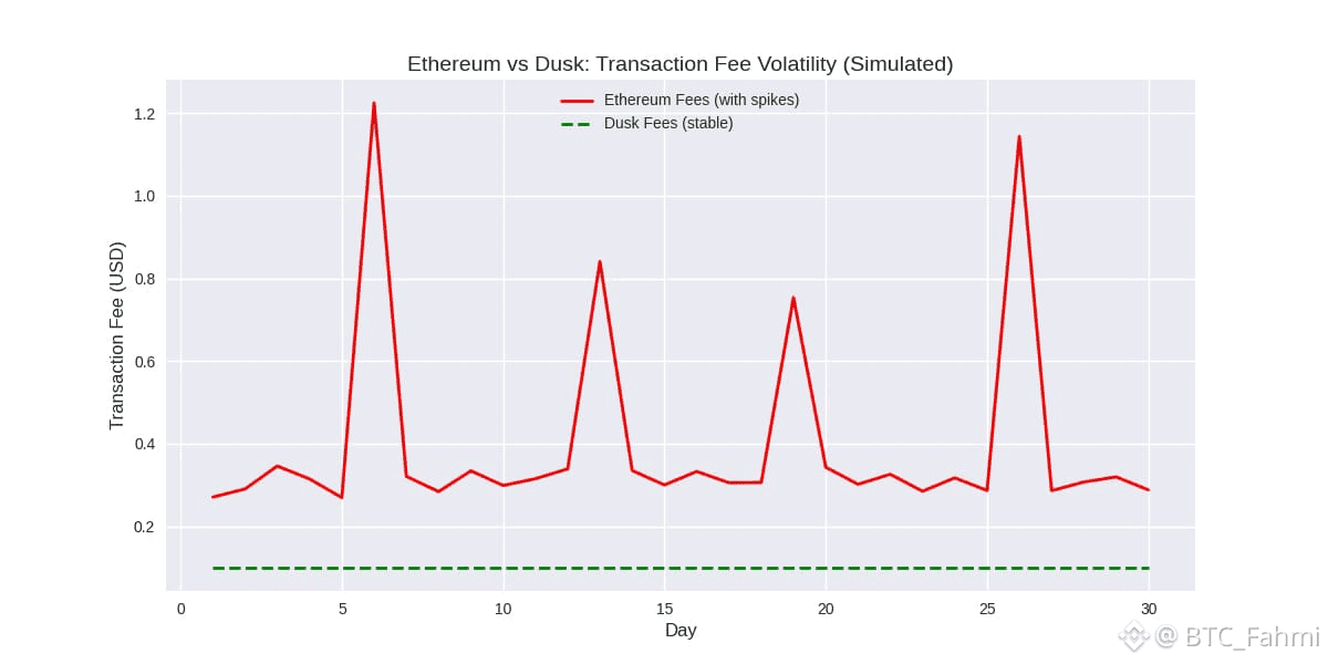 Ethereum can be affordable when demand is low, but it can become expensive when demand is high. Dusk’s long-term appeal is that a purpose-built chain for regulated finance should avoid the global bidding-war dynamic that dominates Ethereum mainnet usage. That doesn’t guarantee low fees forever, but it changes the fee psychology. If the chain is built to support financial products where costs must be predictable—think settlement rails, issuance systems, compliant exchanges—then “spiky fees” become a design failure, not a temporary inconvenience.