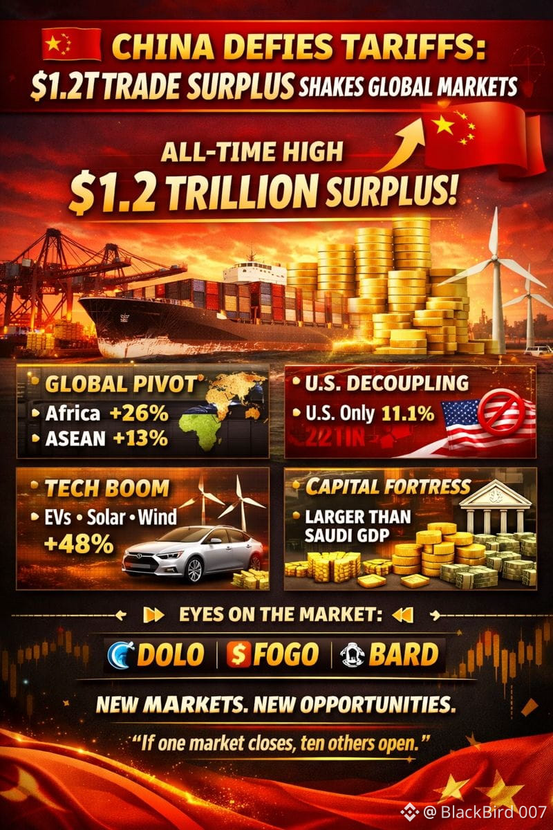 Despite tariffs and U.S. trade pressure, China just closed 2025 with a record $1.2T surplus. The export engine didn’t slow — it rerouted. 🔄