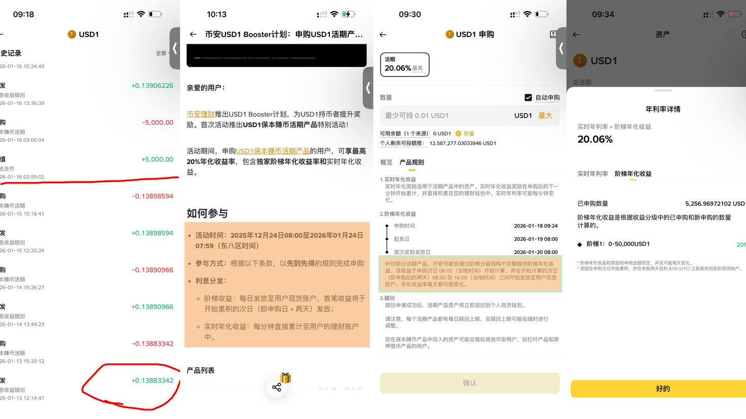 以前我对理财嗤之以鼻,因为套路实在太多了,所以二十几天以前币安出了号称20%年化的$USD1 理财时,我看都没懒得看一眼。