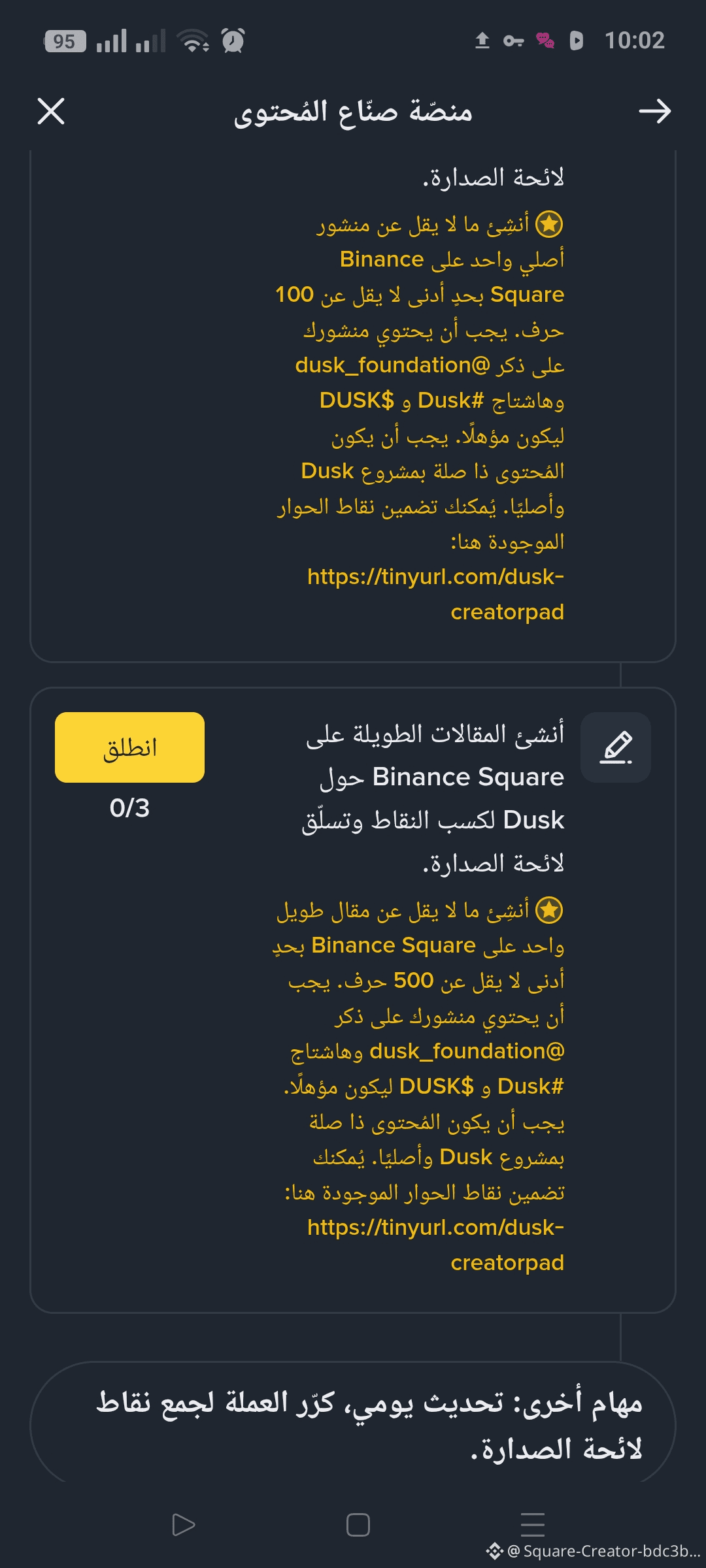 الإشارات: تم تضمين @Dusk sk والهاشتاقات #Dusk و #doge⚡ USK$ كما هو مطلوب في المهمة.