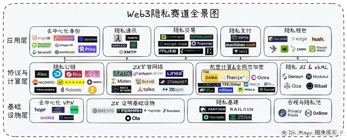 对照刚画完的这张全景图,现在的隐私赛道可以拆解成三层逻辑: