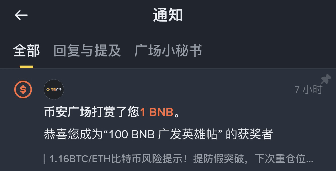 这枚 BNB 我不打算卖,我想把它锁在钱包里,算是我在广场成长的一个里程碑