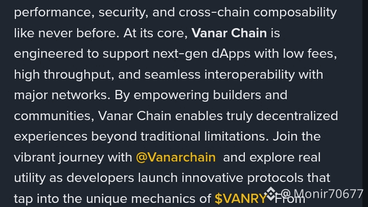 The rise of #Vanar marks a pivotal moment in the evolution of Layer-1 ecosystems — blending performance, security, and cross-chain composability like never before. At its core, Vanar Chain is engineered to support next-gen dApps with low fees, high throughput, and seamless interoperability with major networks. By empowering builders and communities, Vanar Chain enables truly decentralized experiences beyond traditional limitations. Join the vibrant journey with @Vanar and explore real utility as developers launch innovative protocols that tap into the unique mechanics of $VANRY . From enhanced staking models to scalable governance, Vanar is redefining how users interact with Web3. Share your insights, collaborate with fellow innovators, and witness firsthand how this ecosystem grows with real use cases. The future of decentralized infrastructure is here — build, innovate, and thrive on Vanar Chain.