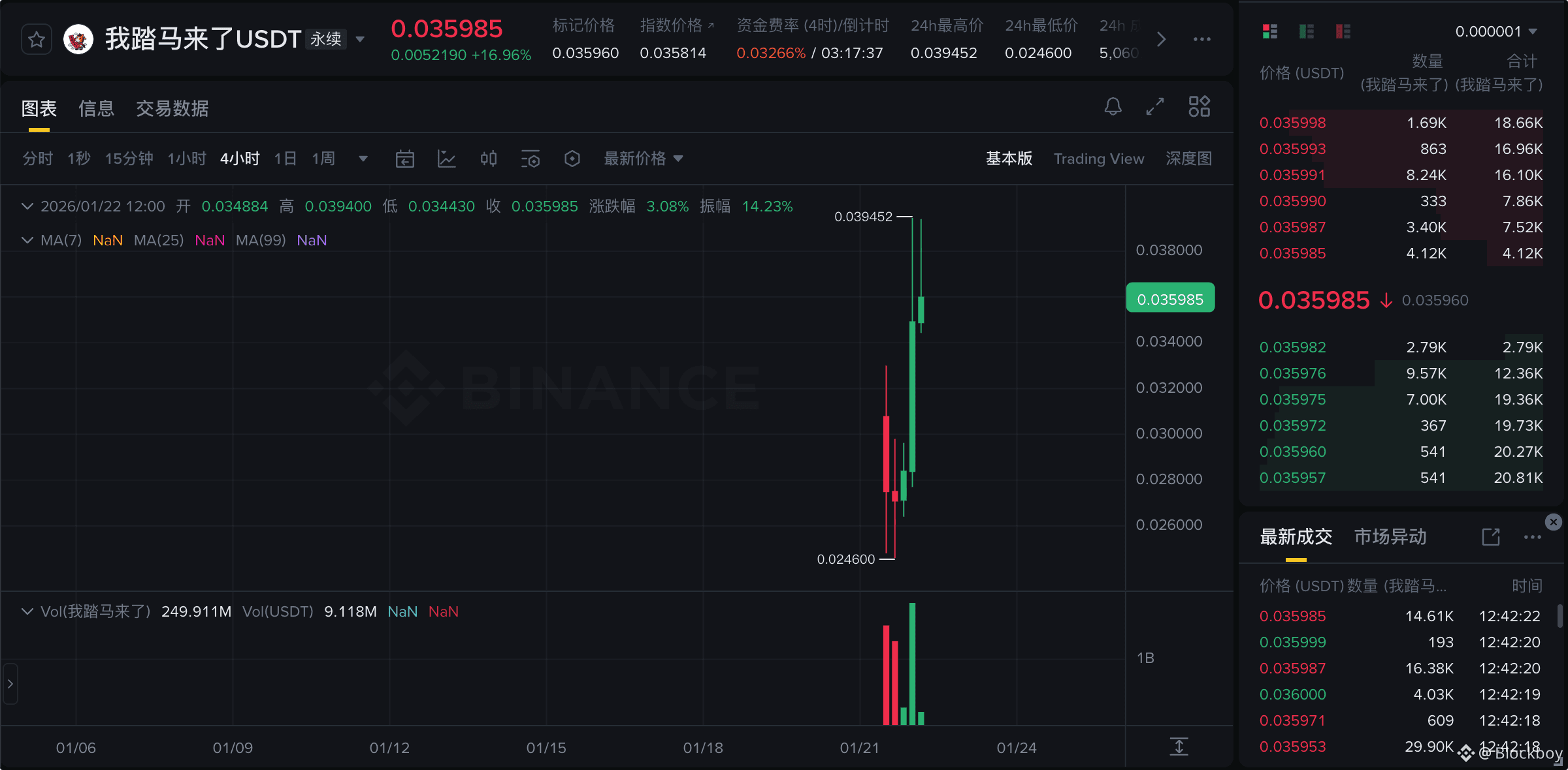 资金费率警示:关注合约市场的资金费率。如果费率极高(多头过度拥挤),则很有可能再次出现类似 $0.0246 的向下插针画门行情,切勿在高位使用高倍杠杆。