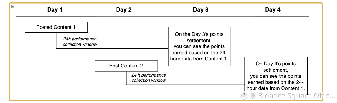 The core change: after content is published, it will take at least 2 days before the content’s points summary can be seen in the points statistics. For example, if Content 1 is published on Day 1, its points can only be viewed on Day 3.