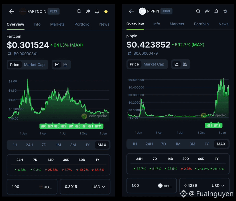Pippin & Fartcoin: When Attention turns into hard assets. 2025-2026 marked legendary "decouplings":