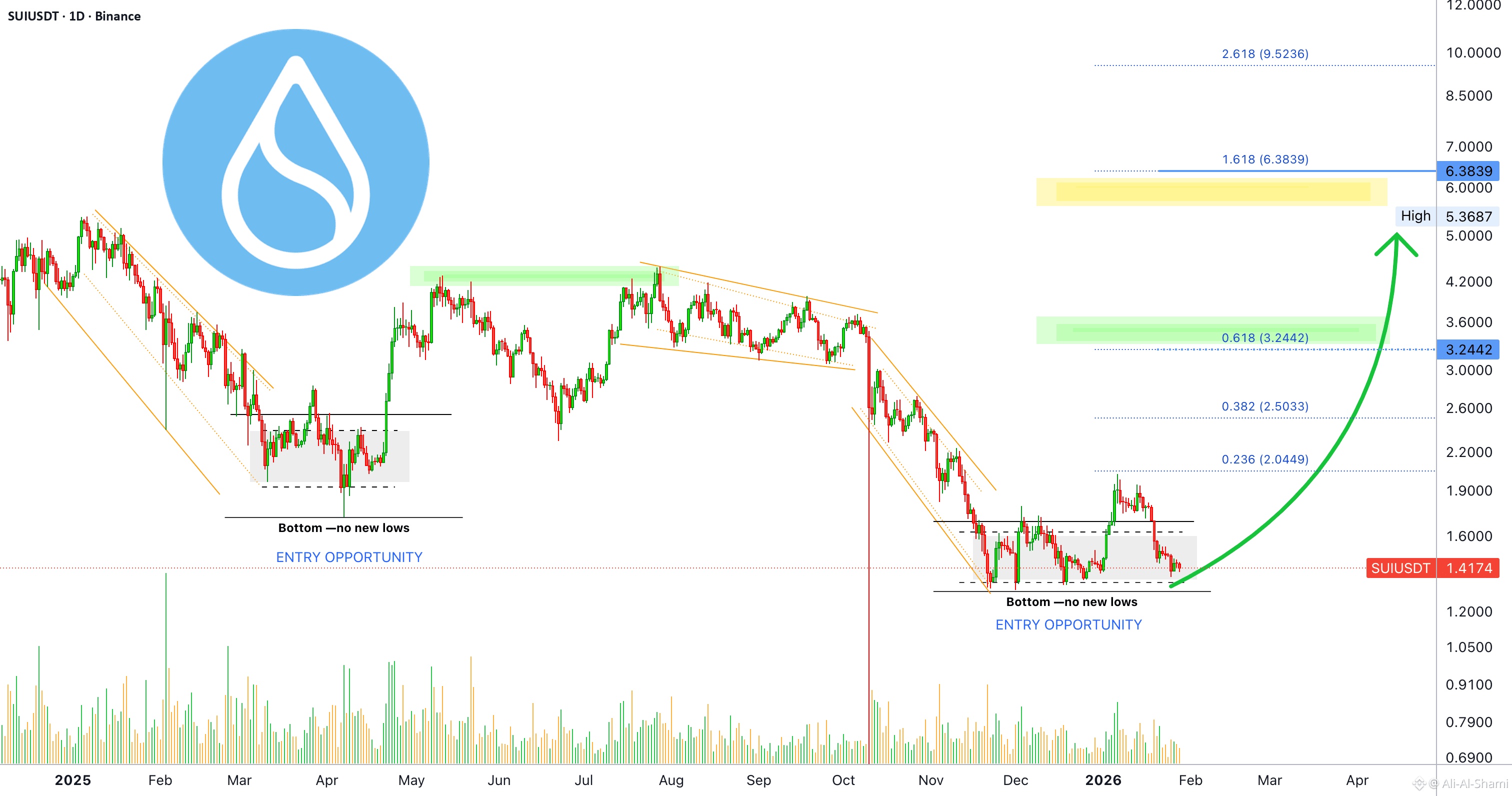 SUIUSDT يتحرك الآن ضمن "منطقة شراء الفرصة." هذا ما أسميه منطقة دخول جيدة حقاً أو أسعار رائعة. هذه هي الأفضل على الإطلاق عندما يتعلق الأمر بدخول محتمل للتجارة. ليس فقط السعر صحيح ولكن التوقيت، التوقيت رائع حقاً.